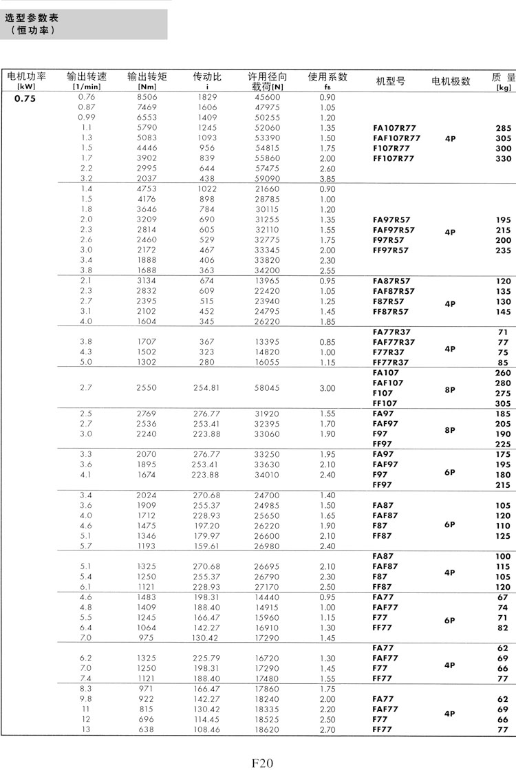 F系列选型参数表