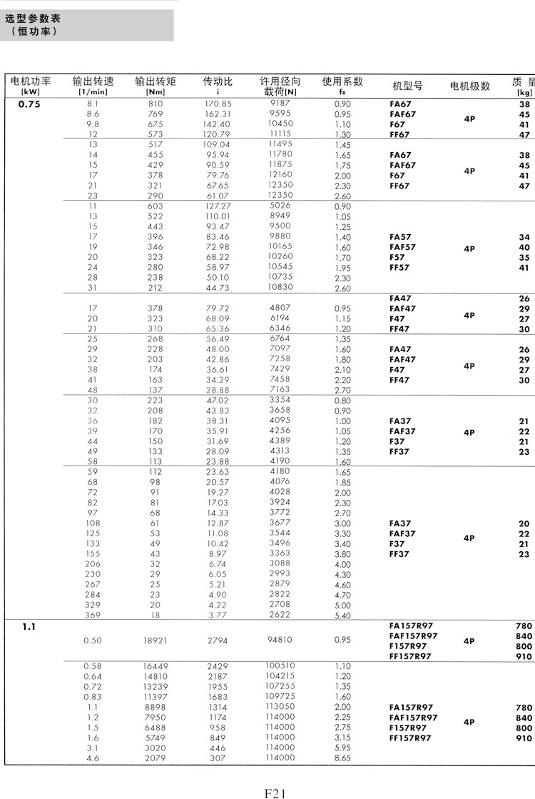 F系列选型参数表
