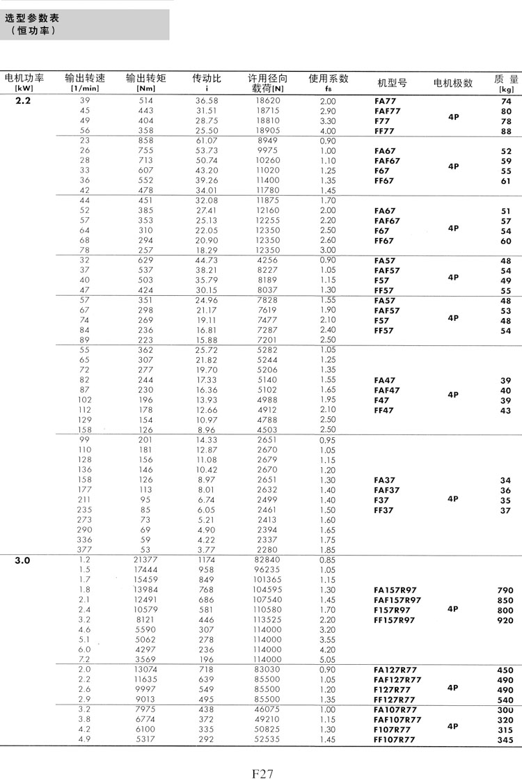 F系列选型参数表