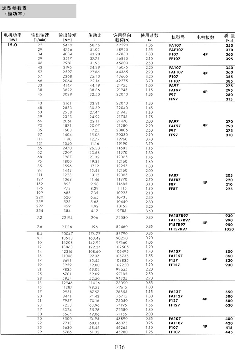 F系列选型参数表