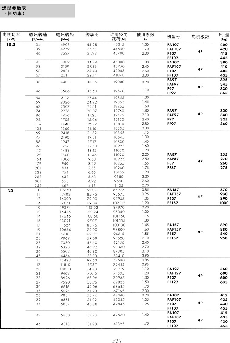 F系列选型参数表