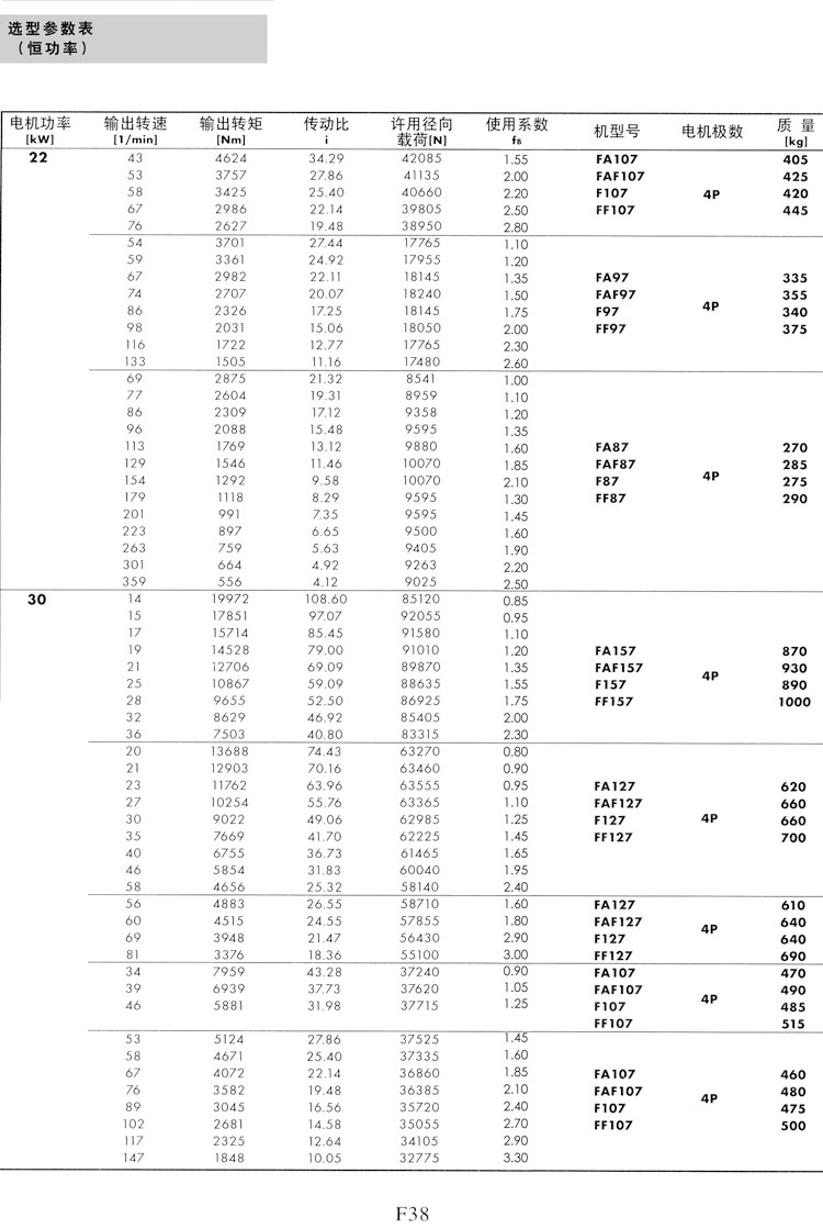 F系列选型参数表