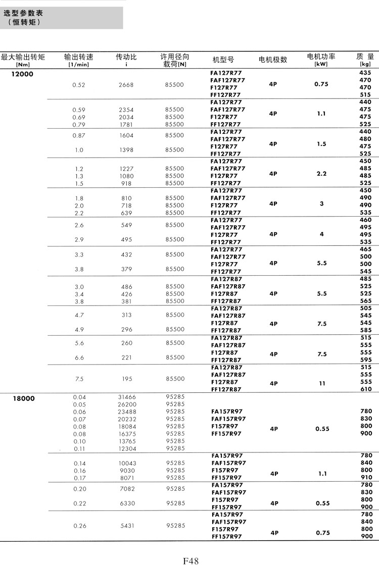 F系列选型参数表