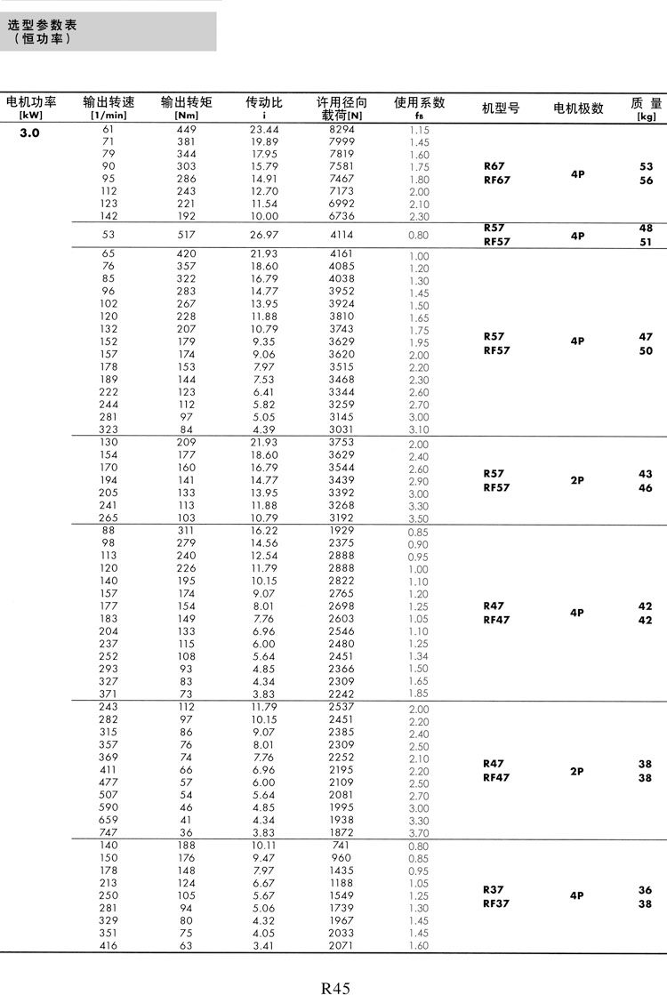 R系列选型参数表