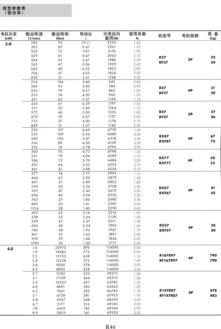 R系列选型参数表