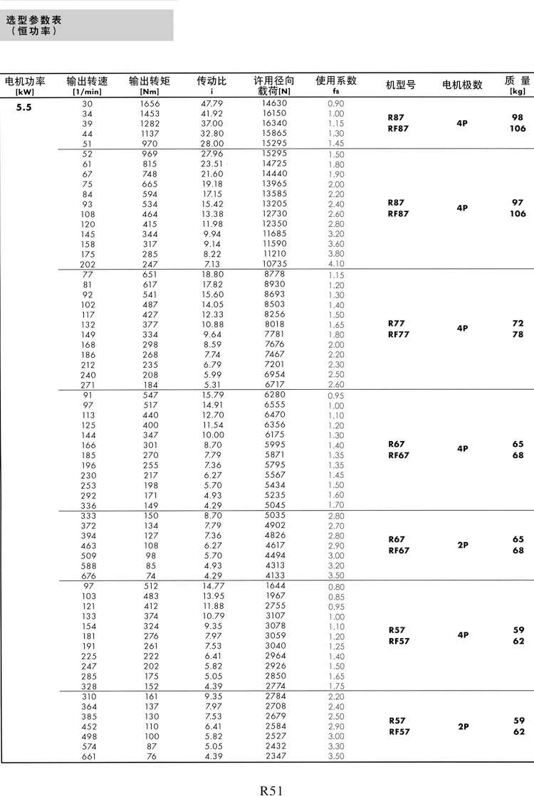 R系列选型参数表