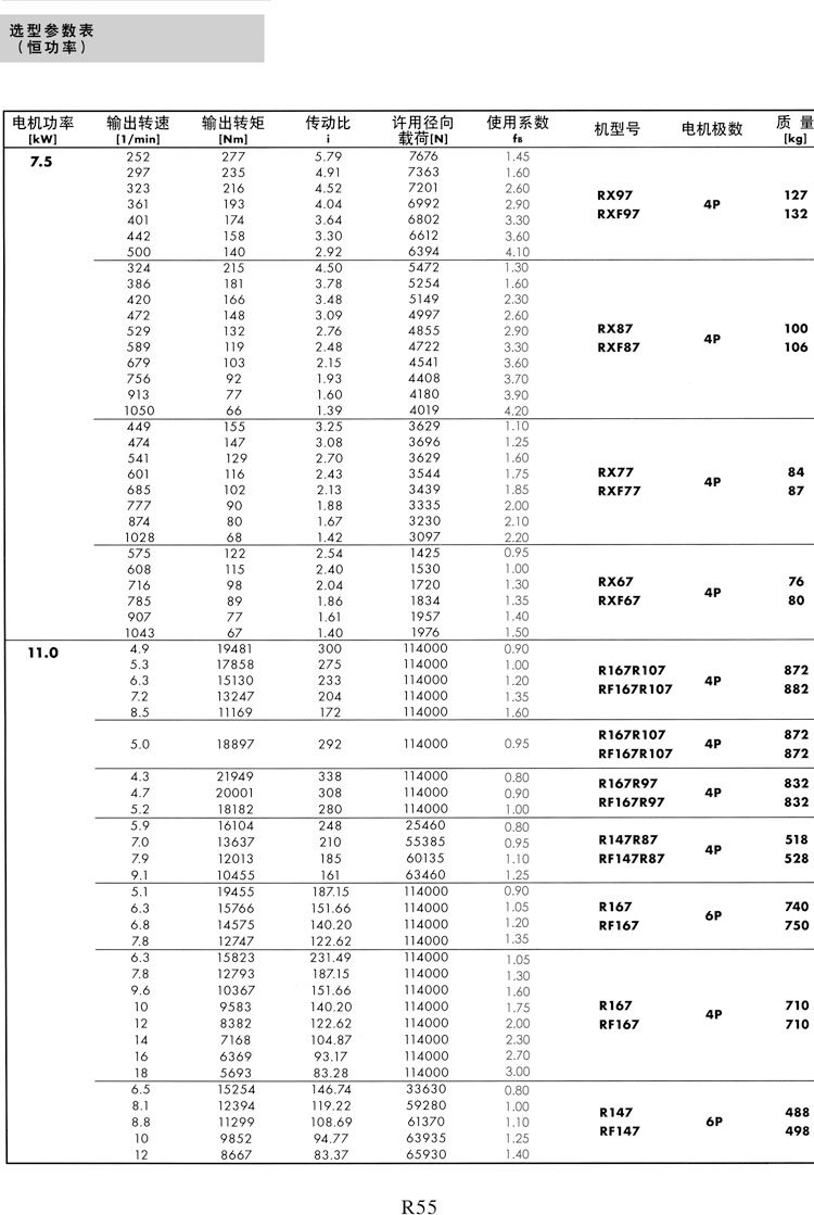 R系列选型参数表