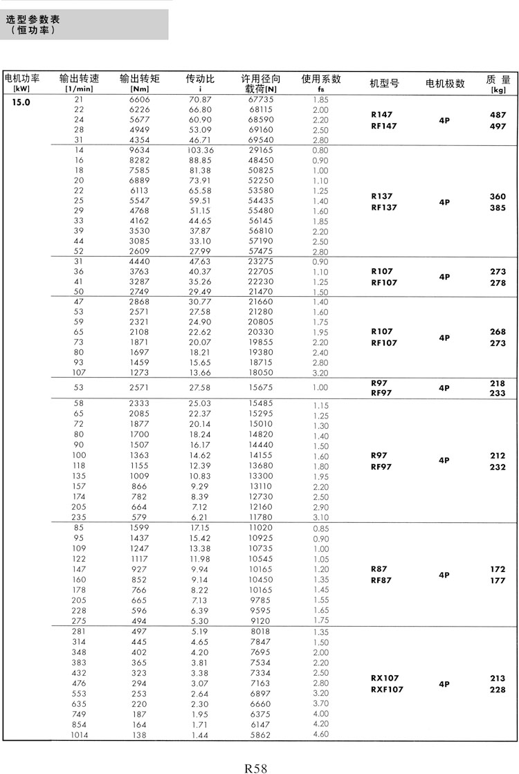 R系列选型参数表