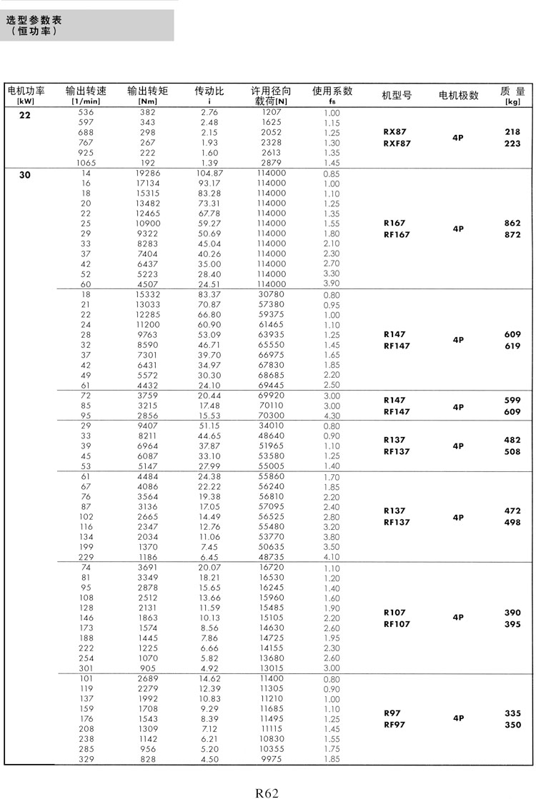 R系列选型参数表