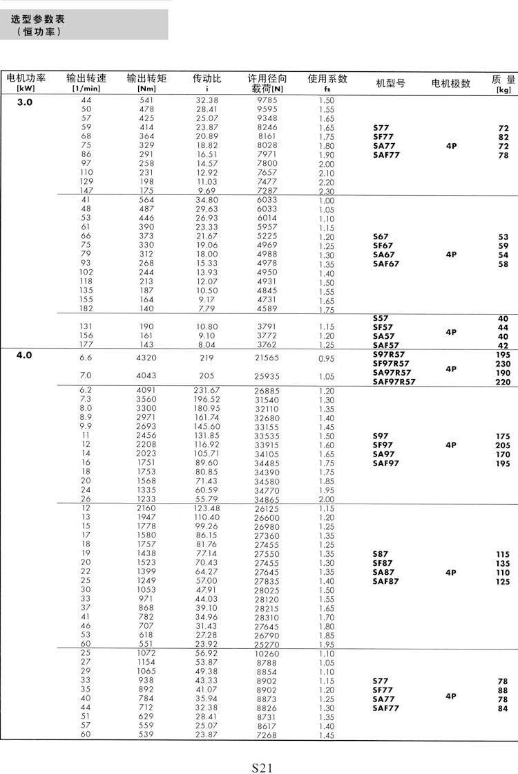 S系列选型参数表