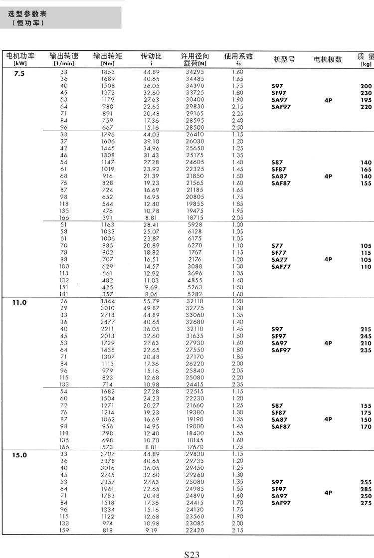 S系列选型参数表