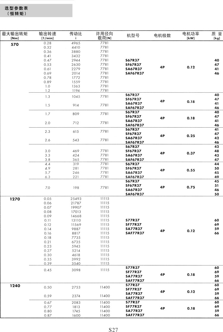 S系列选型参数表