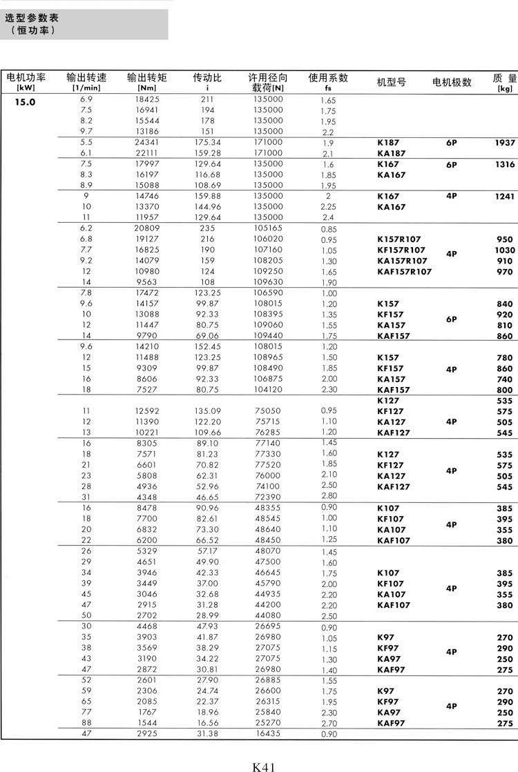 K系列选型参数表