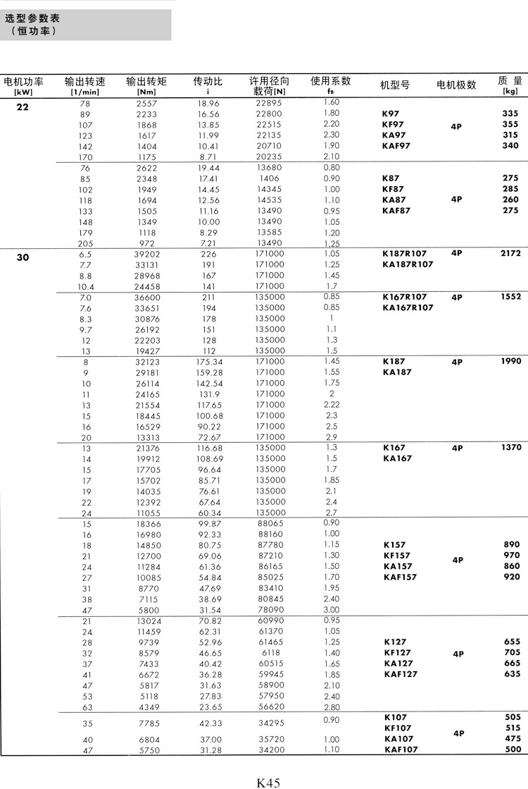 K系列选型参数表