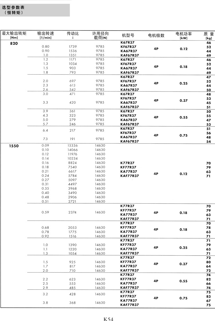K系列选型参数表