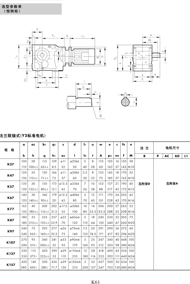K系列选型参数表