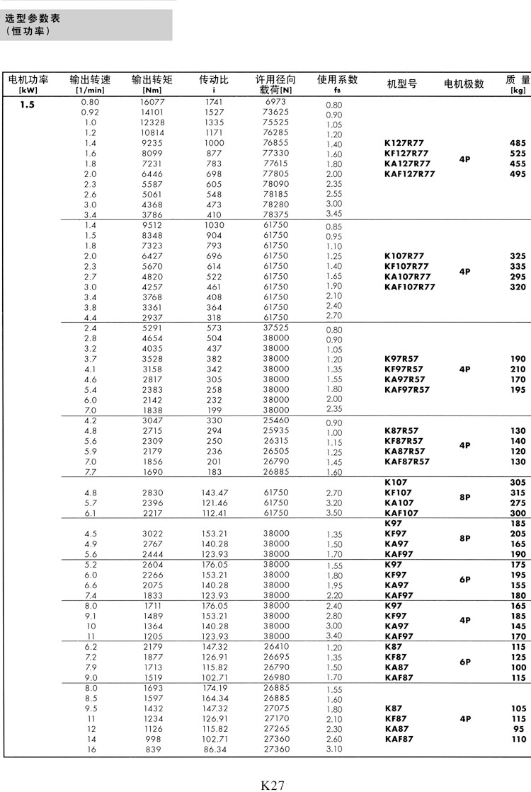 K系列选型参数表