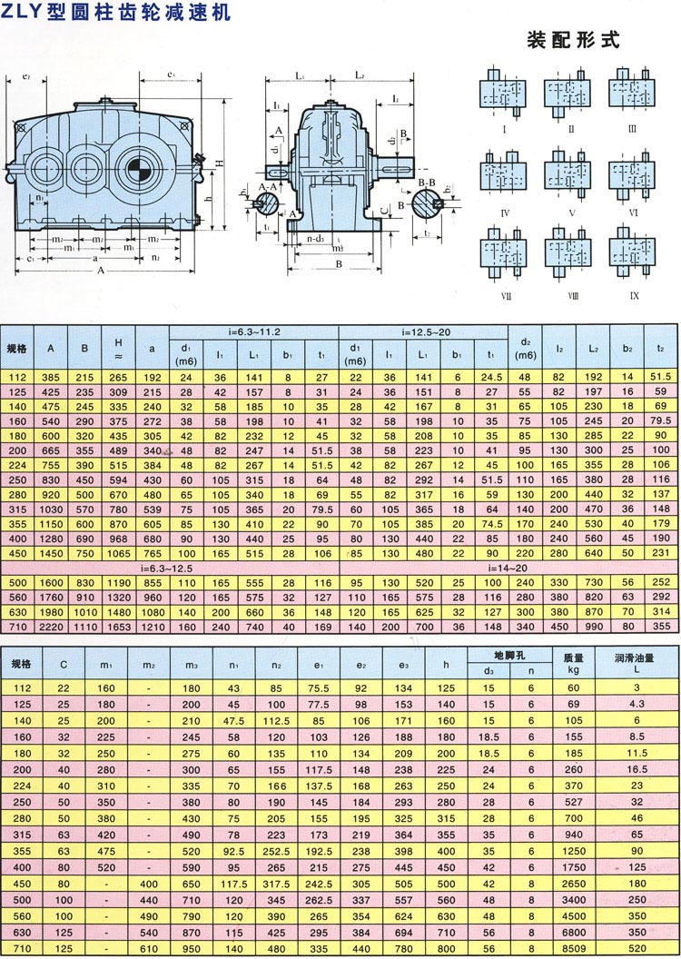ZLY硬齿面圆柱齿轮减速机外型及安装尺寸