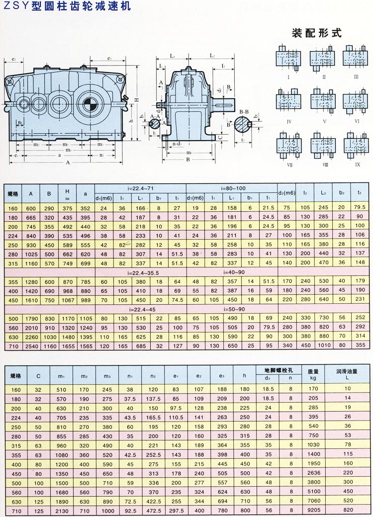 ZSY硬齿面圆柱齿轮减速机外型及安装尺寸
